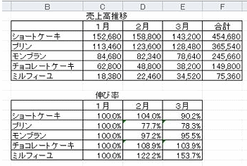 このことは、ショートケーは、売り上げは大きいのですが、ミルフィーユの方が販売に勢いがあって好調であることを示しています。